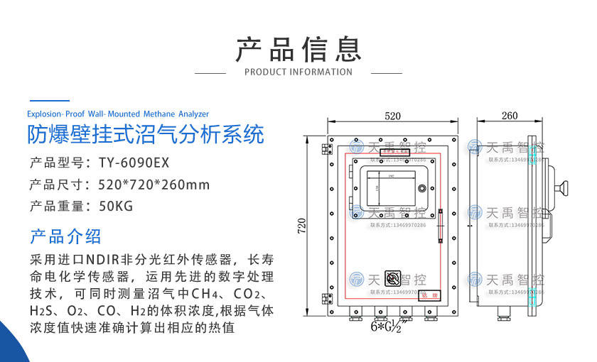 CH4:0-100%;CO2:0-50%; O2:0-25%; H2S:(0-9999)ppm |