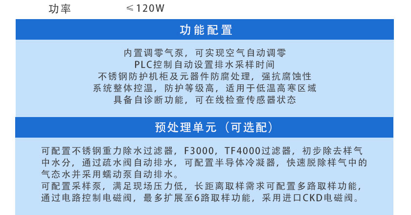 可配置采樣泵,滿足現(xiàn)場(chǎng)壓力低,長(zhǎng)距離取樣需求可配置多路取樣功能,通過電路控制電磁閥,最多擴(kuò)展至6路取樣功能,采用進(jìn)口CKD電磁閥。 |