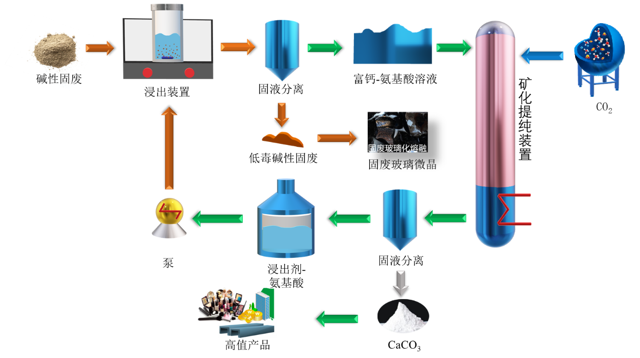 圖2. CO2礦化利用堿性固體廢棄物關(guān)鍵技術(shù)研究機(jī)理示意圖