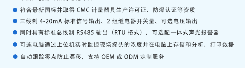 ①4-20mA信號:傳輸距離1Km ②RS485信號:傳輸距離2Km |
