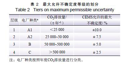 歐盟對CEMS 需達到的數(shù)據(jù)質(zhì)量要求做了明確規(guī)定, 選取不確定度作為反映數(shù)據(jù)質(zhì)量的指標(biāo),同時根據(jù)電廠年度CO2 排放量對數(shù)據(jù)質(zhì)量分級管理。