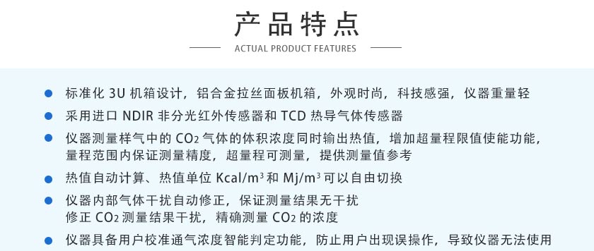 (2)采用進口NDIR非分光紅外傳感器和TCD熱導氣體傳感器。