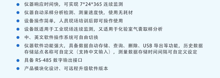 (7)儀器響應時間快,可實現7*24*365連續監測。
