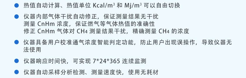 采用進口NDIR非分光紅外傳感器,長壽命電化學傳感器,運用先進的數字處理技術,可同時測量沼氣中CH4、CO2、H2S、O2、CO、H2的體積濃度,根據氣體濃度值快速準確計算出相應的熱值。