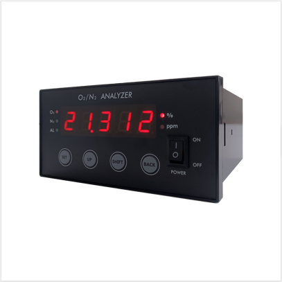 O2/N2分析儀采用離子流氧傳感器為測量單元,經過單片機對信號進行處理換算,直接計算出氮氧混合氣體中的氧氣濃度值,并直接經過數碼管顯示氧氣濃度值或推算出氮氣濃度值顯示。本儀器標配一個可編程報警點、一個可編程電流信號(4-20mA)輸出,一組報警開關量輸出,一個標準RS485通訊接口;