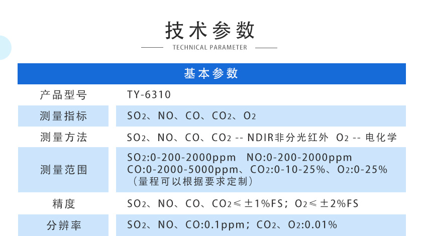 SO2、NO、CO、CO2:≤±1%FS;O2:≤±2%FS |