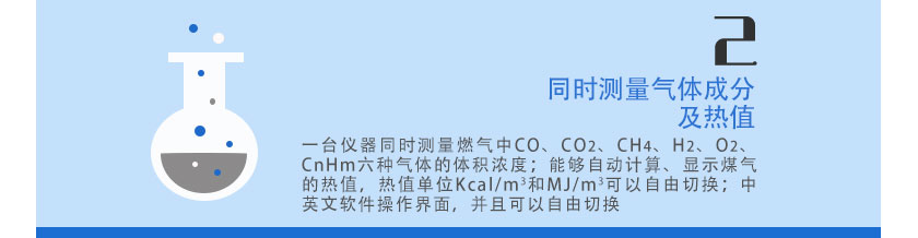 CO、CO2、CH4、H2、O2、H2S(可以任意選擇1-6種組分的濃度和熱值顯示) |