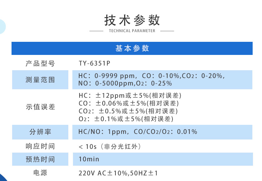 HC:±12ppm或±5%(相對誤差);CO:±0.06%或±5%(相對誤差);CO2:±0.5%或±5%(相對誤差);O2:±0.1%或±5%(相對誤差); |