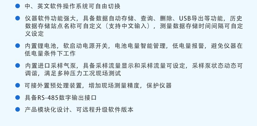 SO2、NO:0~20~100mg/m3;O2:0~25%;CO:0~625mg/m3;CO2:0~65%;(量程可以根據(jù)用戶實(shí)際需求配置) |