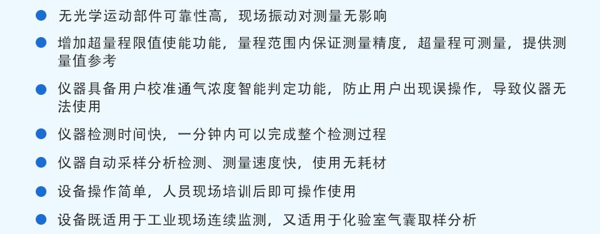 SO2、NOx:紫外DOAS技術(shù);O2:電化學(xué)技術(shù);CO:電化學(xué)技術(shù)/Tdlas激光技術(shù);CO2:NDIR非分光紅外技術(shù) |