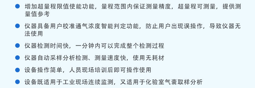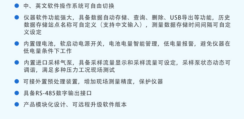 SO2、NO、NO2:0~100mg/m3;O2:0~25%;CO:0~100mg/m3;CO2:0~50%;(量程可以根據(jù)用戶實(shí)際需求配置) |