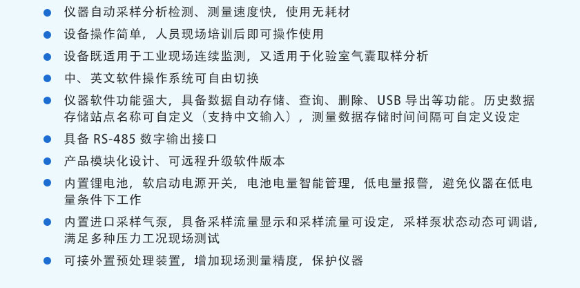 (11)設(shè)備既適用于工業(yè)現(xiàn)場連續(xù)監(jiān)測,又適用于化驗(yàn)室氣囊取樣分析。
